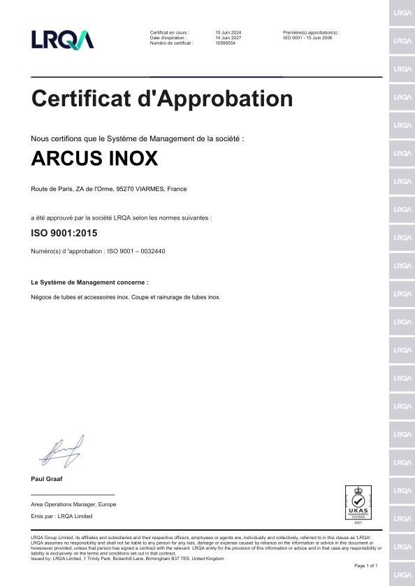 ARCUS FRANCE est bien situé sur le marché de l'inox par sa réactivité et son stock. Si l'évolution permanente du métier impose souplesse et réactivité, la compétitivité passe aussi par des engagements forts dans des démarches d'amélioration continue et durable en matière de Qualité.